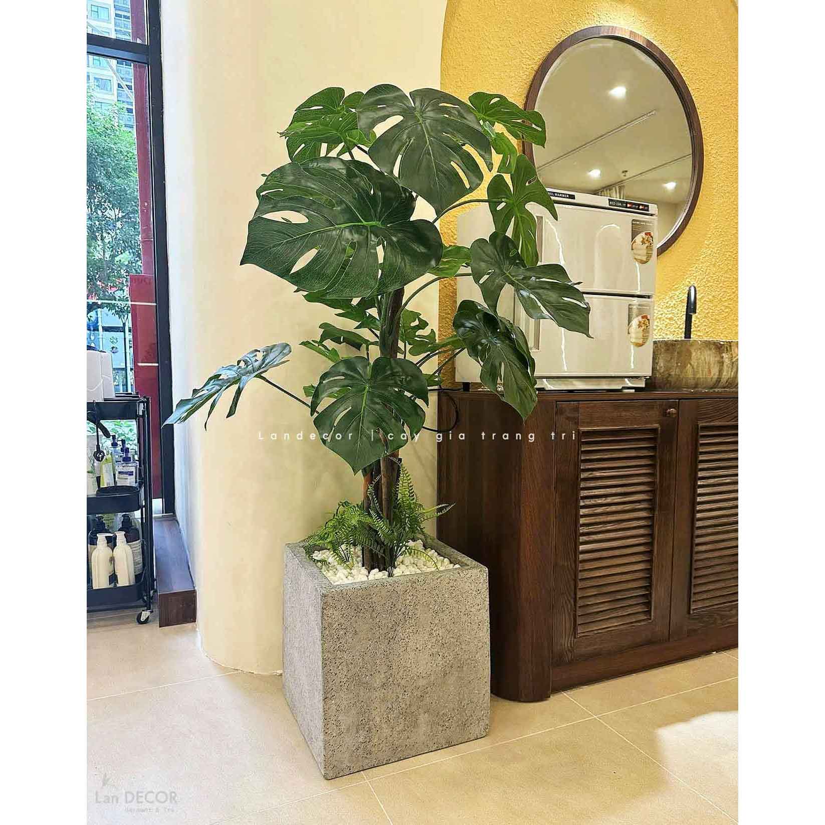 - Chất liệu: nhựa tổng hợp cao cấp, cành lõi thép, thân cây gỗ tự nhiên.